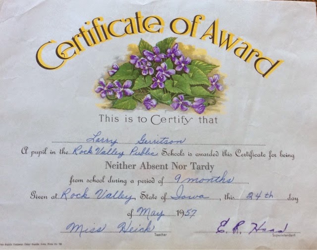 (Charlie’s framed certificate is packed away while we wait-slowly-for our house to sell. This is one of my brother Larry’s awards I just found, similar, but missing the Michigan state seal, and of course 40 years later).