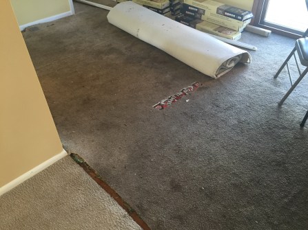 The moving crew could not get the wardrobe (Saran wrapped like a mummy) around the corner from the hallway though. So they plopped it in the already crowded master. Blocking any chance of getting around it to reach the 4 box wardrobes holding all of our clothes. Remember, it’s now been almost 2 months and I’m still wearing the same few crappy outfits I packed in August.