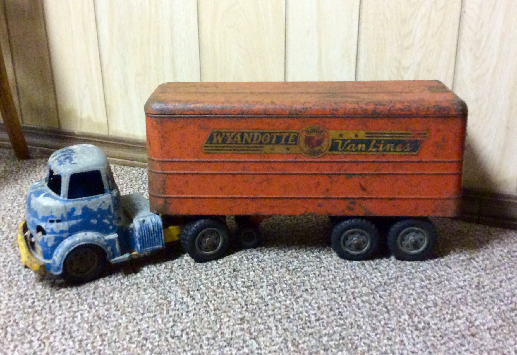 From the get-go, I liked oak that was rather dainty. With curved glass and claw feet. Reflecting back, I didn’t realize my tastes were changing. Twenty years later, I found myself liking my furniture darker and buying more rustic pieces. Huh? Yup, in my late thirty’s I got hooked on boxes. Wooden boxes. Nothing beautiful, petite, or even oak. How did this happen? To me, the dainty oak collector? The sheer magnitude of this box/advertising obsession wasn’t fully realized until we were unpacking at the new house. Many of these bits and pieces of bizarre collections have been in storage for several years when we were forced to live a minimalist life style in order to sell our house. Remove all but a few pieces, giving the house a larger appearance, concentrating on the house, instead of all the stuff in the house. Gone were my broken, metal toy trucks and cars, all missing paint, headlights or other parts. Advertising paraphernalia that once graced my oak furniture. Green glass measuring cups, matchbooks, old dolls, depression glass, all packed away in a storage unit. Making me depressed.