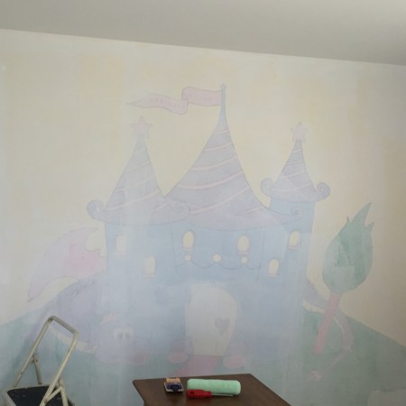 | The dragon and castle after 2 coats of Kilz. Ugh… |