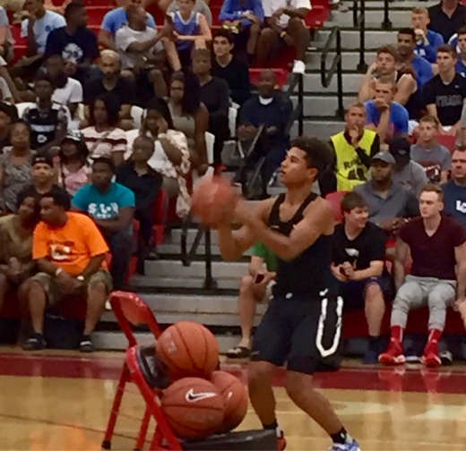 Landon’s team wins both games on Saturday to qualify for the semi-finals on Sunday morning. Landon plays well in both games, scoring 11 in the first one. He does not feel well in 5th game, he’s pale and bending over a lot, so sits out most of the first half, sipping water. Landon ends up with 18 points, with several college coaches (including Michigan’s Beilein and MSU’s Izzo, sitting one chair apart from each other, but pretty much ignoring that fact, no love lost there I think) on one side of the court. Over a hundred colleges are represented with coaches watching certain players.
