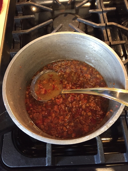 Ah, the dressing. A kick back to reality. I think I’ve found a dressing that is pretty close to the one I remember as a kid, that’s been stuck in my head for 50 years. The taste reminds me of Mom’s, though the consistency and color remain different. The way I recall Mom’s is more like a thick gravy. The recipe I like is much thinner. So I added another tablespoon of cornstarch to the one already in the recipe. Better, though I may continue to tweak the thickness, I absolutely love the taste. Oh my goodness, kinda sweet with a twang. By jove, I think I’ve got it…