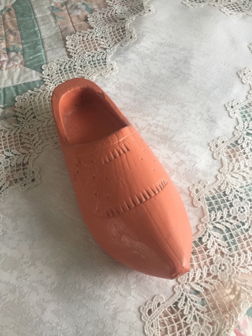 | My great-grandma’s wooden shoe. Mom painted it in the ‘60’s. Sigh… |