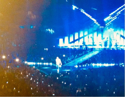 After ordering modest amounts of food (mini fajitas), platters the size of small yachts are placed in front of us. None of us made a very big dent on our delicious Mexican fare. Couldn’t take the excess food with us either as we were using Uber to get from here to there. (My first time for that too). It had been sprinkling since Shannon and I arrived in Detroit, by the time we were heading to the concert it was a steady drizzle and very cool. But the wait to get in the arena (everyone had to go through a metal detector, and they totally checked every inch of my purse) wasn’t 10 minutes.