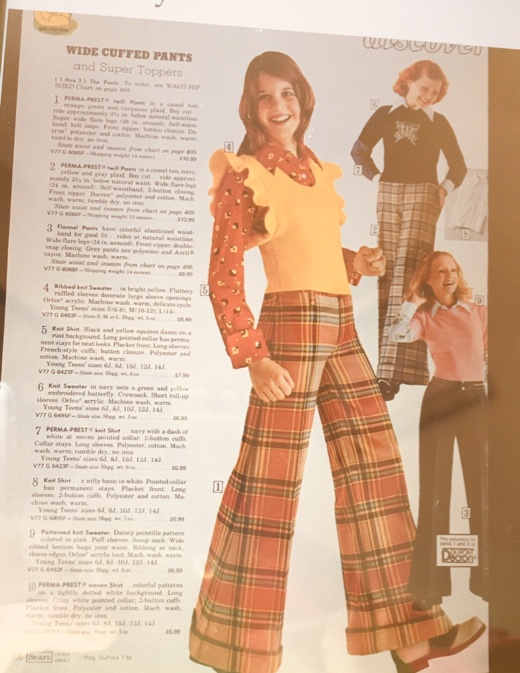 Back in those days Mom did not have a credit card. She just added up the cost of the catalog items, looked on a chart for the additional shipping & handling charge and simply mailed a check with the order form. We’d both be so excited, waiting what felt like an eternity for our order to be delivered. I can still remember numerous packages, tissue wrap, (Mom holding all the straight pins), plastic bags scattered all over our living room floor, while I tried on new clothes. Mom had the final say on everything, including quality control of said garments. If the plaid pattern of a new skirt didn’t match EXACTLY from one seam to another-bam-she’d slap that thing right back in the package for a return. Shopping from The Catalog was about as much fun, but in a different way as an actual shopping trip. Weird.