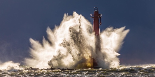 | Muskegon Lighthouse on Lake Michigan with high winds. By Mike Dixon… |