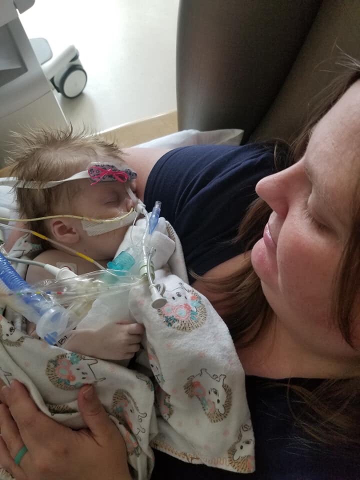 Mom’s posts usually include pictures of Evy or family members enjoying snuggle time with their dimpled, blued eyed doll. On particularly low days posts, she explained, “what I’ve chosen not to share is Evy, her skinny legs rigid, back arched, writhing in agonizing pain,” while I sob beside her because I can’t fix this. “I’m emotionally, physically, spiritually tired, and my soul is weary. But God is good. I will finish my ice cream, my popcorn and laundry because the hospital staff frown on nudity.” (What a great attitude Chrystal. Just when she felt empty and spent, God gave her a refill).