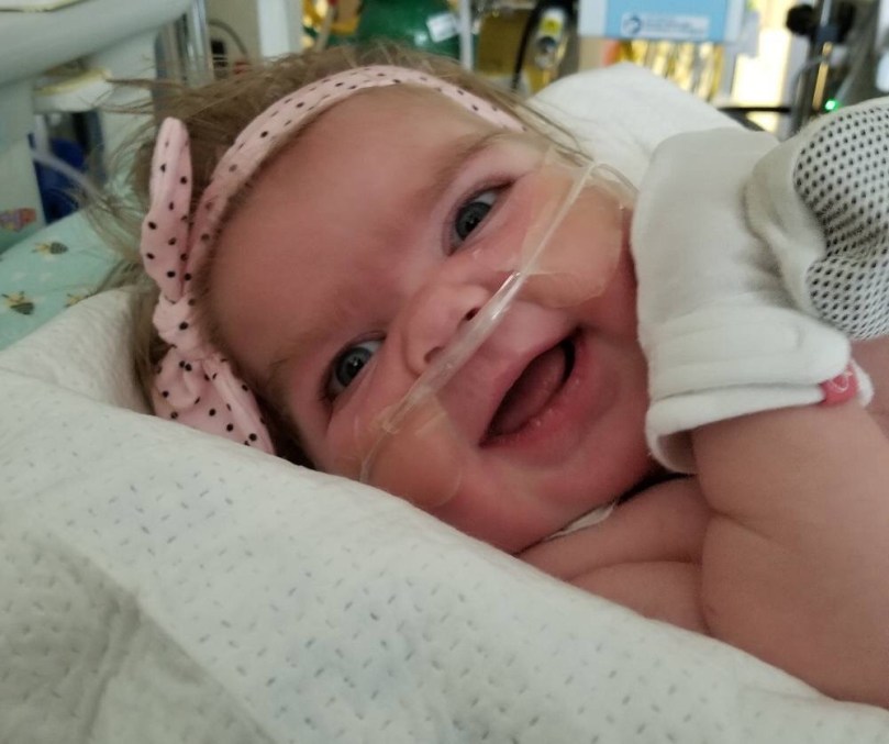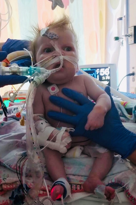Medical personnel couldn’t pinpoint what was wrong with Evy, so she was airlifted to Spokane, Washington with an unknown infection. After thorough testing, a genetic defect was found caused by a mutation of the gene MYH7. Meaning where an A should be, Evy has a G. One of only 3 known cases in the world.