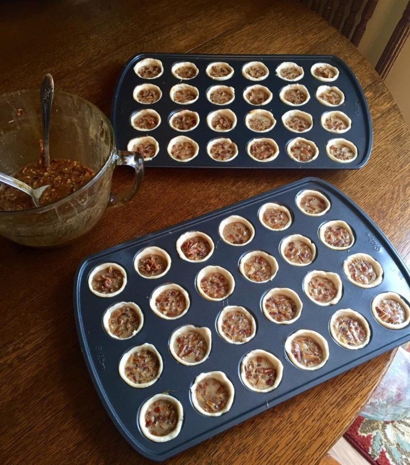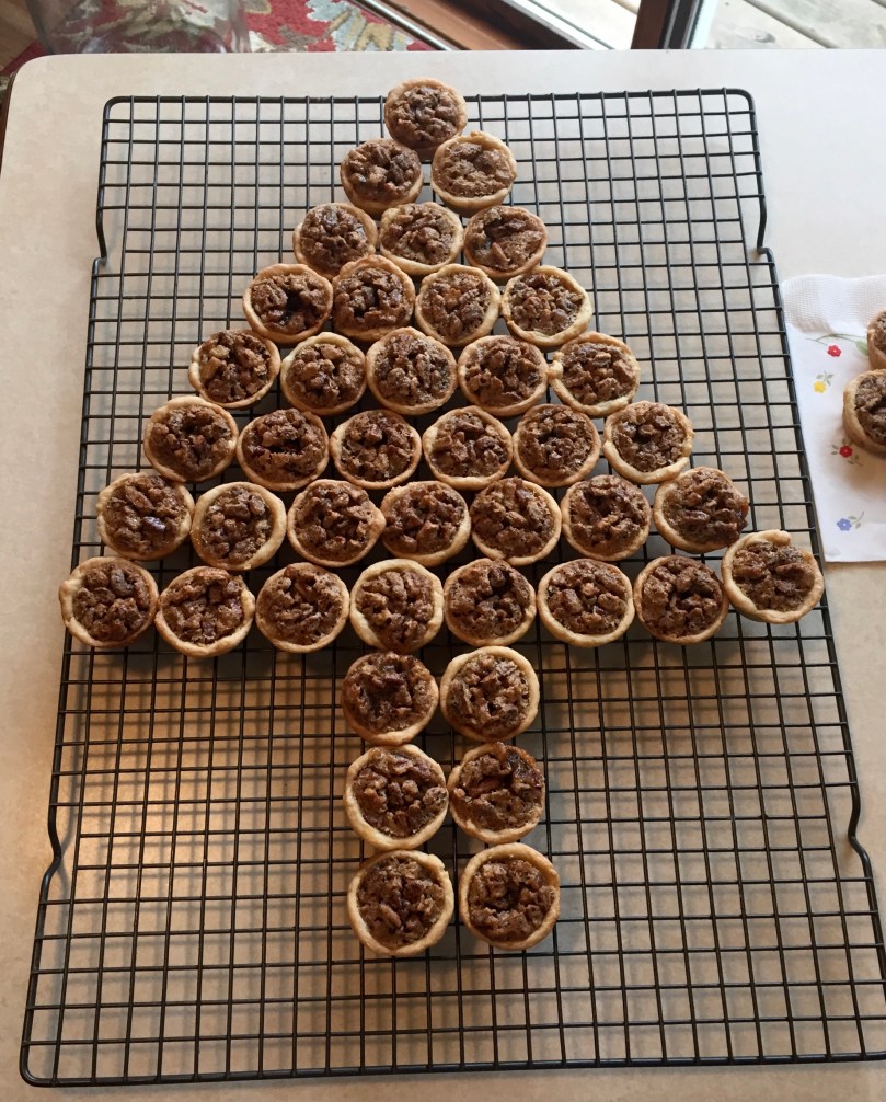Except for Pecan Tassies. There’s no way I would have ever attempted to make these little buggars. They are so much work just the thought makes me wanna scream, yet I’ve been making them for 45 years. Why? Why? (Well, because they are the best, richest most delicious little morsel of a dessert ever, so there’s that). Blame Mag, my mother-in-law.
