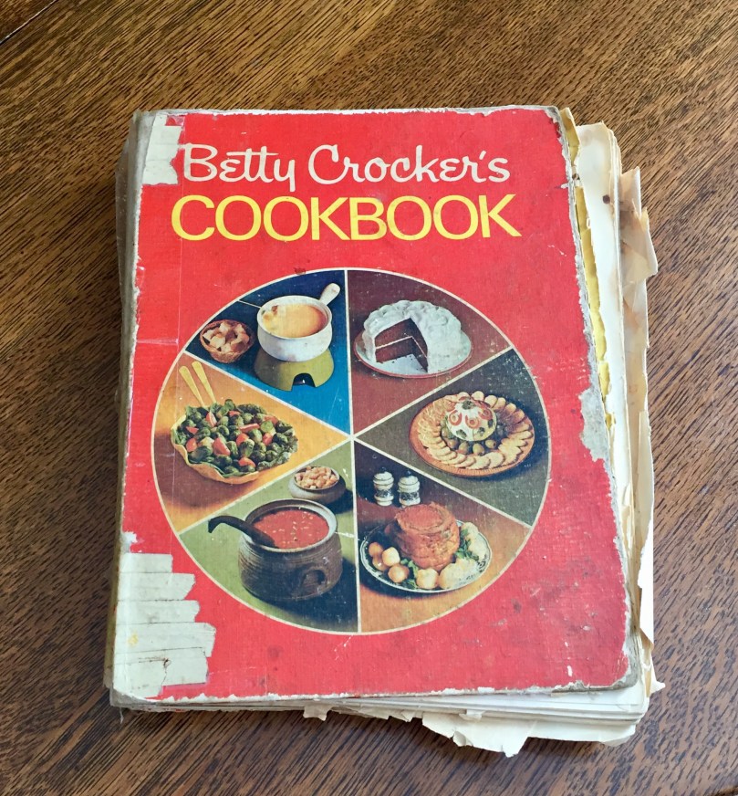 Mom gave me a cookbook when she got over the initial shock her youngest had eloped and nothing she could say/bribe/cajole was gonna change that fact of life. Determined, she kept trying, but only for the rest of her life. Anyway, the cookbook was a good idea because mom had failed to teach me how to cook. She was a good cook but never wanted me in the kitchen with her, even when I was little.