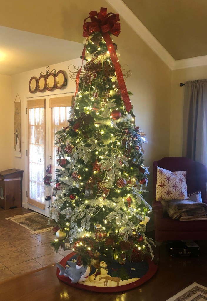 What did I do to deserve this? Absolutely nothing. (I’m sure God had His hand in it). He knew I was having a tough time. A wave of peace enveloped me as soon as I walked into their beautiful home on New Year’s Eve. With a slight southern drawl Pat quipped, “I thought you might enjoy my Christmas decorations, so I left them up.” Every square inch of their house was decorated. Tastefully.