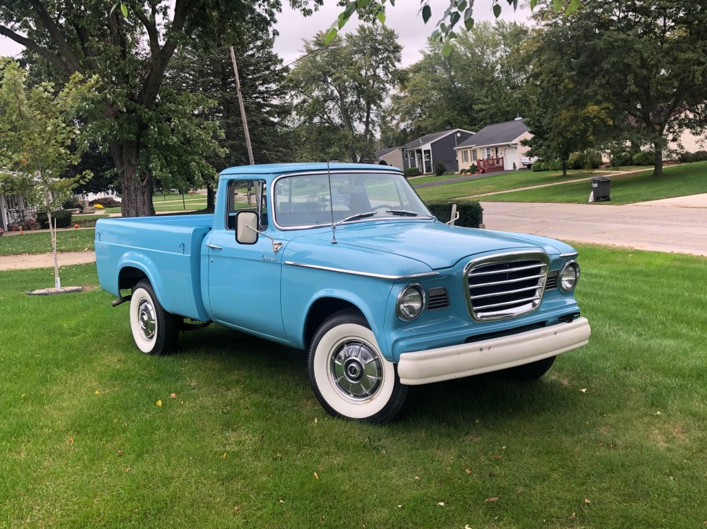 My dad had two of those ’62 Studebaker pickups. One was blue like yours (minus the white walls) and one he painted red. I drove the blue one in my high school years. It had an 8-cylinder engine and a 3-speed overdrive. It would run so fast I couldn’t steer it and had to slow down. After one 180 degree whoop-tee-doo on an icy road, I learned to kick out the overdrive by pulling a lever under the dash. Thanks for the memories.