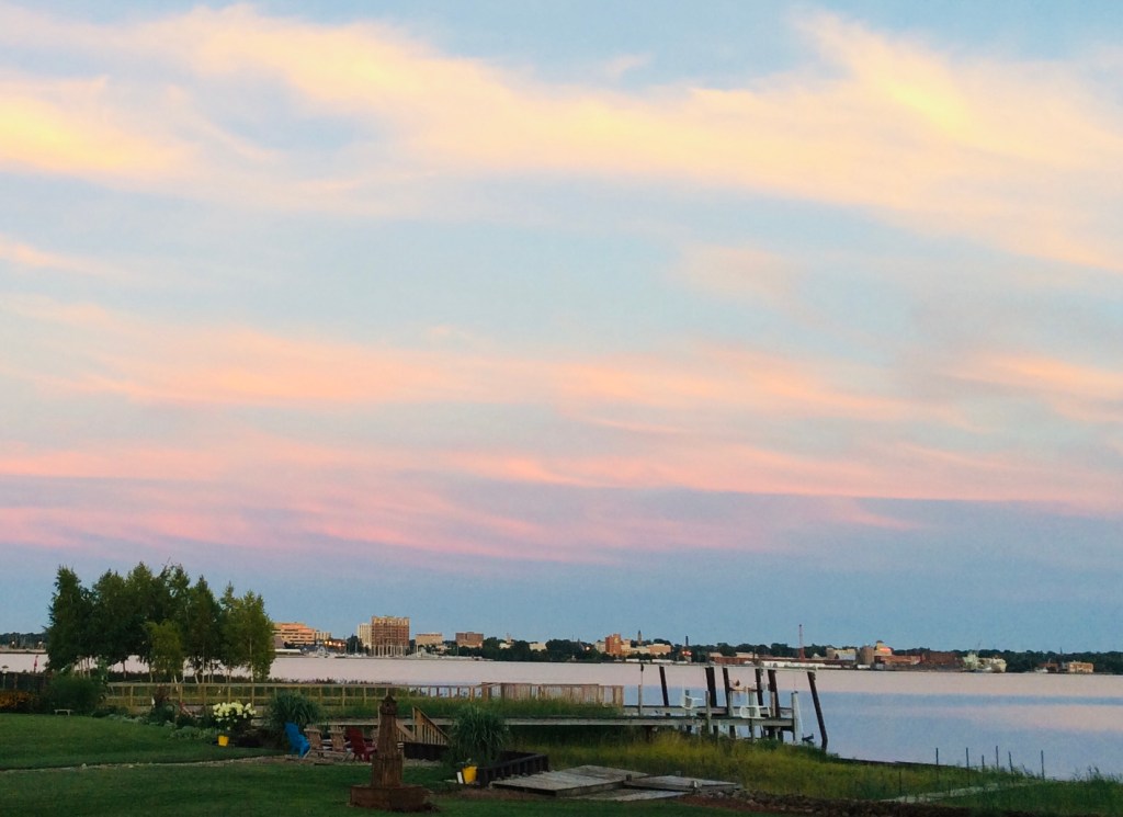 For 5 years we had been living in our first (and last) lake home on Muskegon Lake, about a mile from Lake Michigan by water. A quiet cul-de-sac at the bottom of a steep hill which originally held 5 homes and some extra lots. The back of our house faced the lake with downtown Muskegon on the opposite shore. Our view from the front was an older neighborhood straight up the hill or the park due east with soccer fields, a baseball diamond and shelter house.