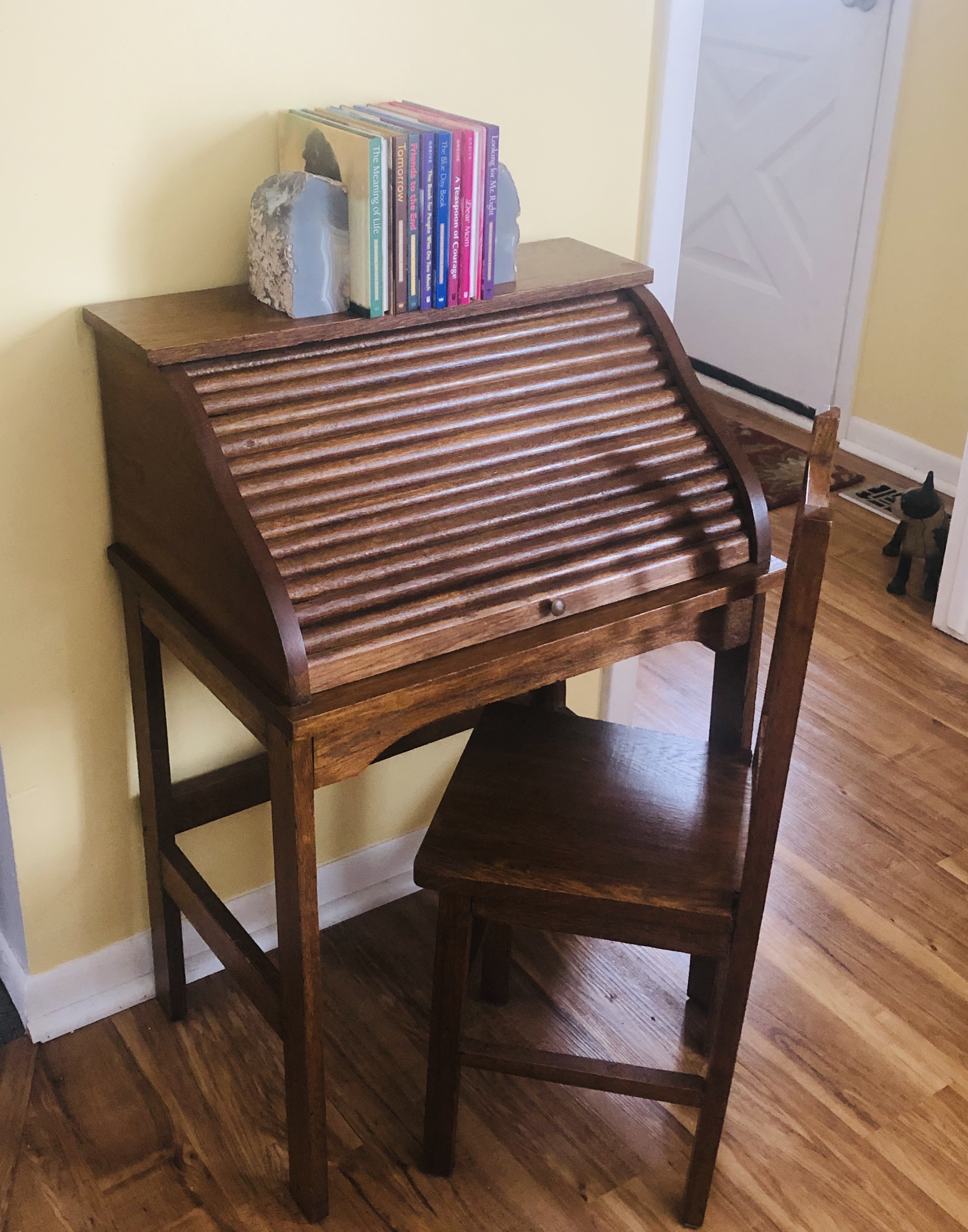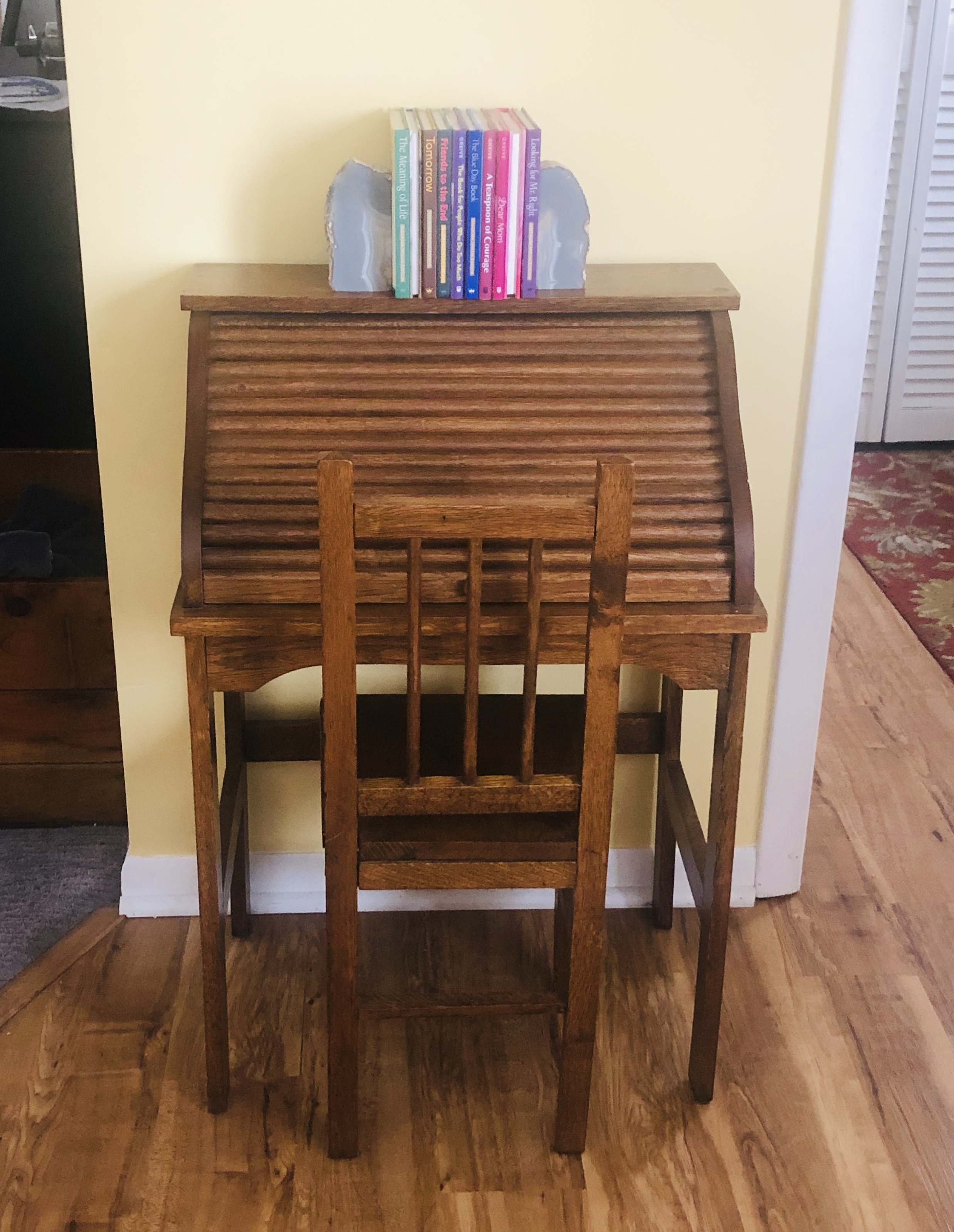 Our house had four doors leading to the outside, although 2 were seldom used. There had been a breezeway between the garage and house which had been enclosed before we bought it. Kind of an odd room we used as a dining room because we had an extra table. (the main function of this gorgeous antique oak table was to collect school bags, coats, hats, miscellaneous gloves, candy wrappers, half eaten food, mail, toys or wet towels recently used in our hot tub). The room had 3 doors (one going into the garage), plus a double doorway to the living room and a single to the eating area off the kitchen. There was one wall for a large Amish cupboard plus the round oak table plopped right in the middle of the room. Everything else was doors or windows. But this little room got used frequently for either going to the backyard, out the front side to the driveway (bikes-skateboards) or into the garage if we were coming or going. No wonder it was always such a mess.