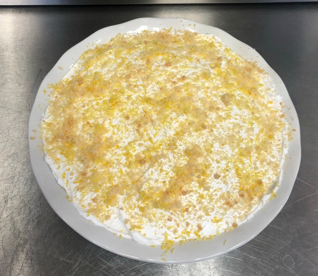 Take one package of instant vanilla pudding mixed with milk and pour on top the crust.